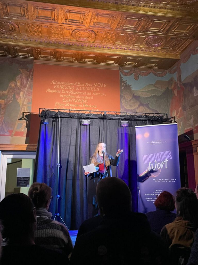 Jessica Davis, Veranstalterin des Event, lud wieder hochklassige Wortkünstler*innen in den Turm. Dieses Mal dabei waren Reni Singer- Songwriterin, Uli Höhmann, Julia Schwamberger und Jessica Davis, die selbst auch Auftritt.